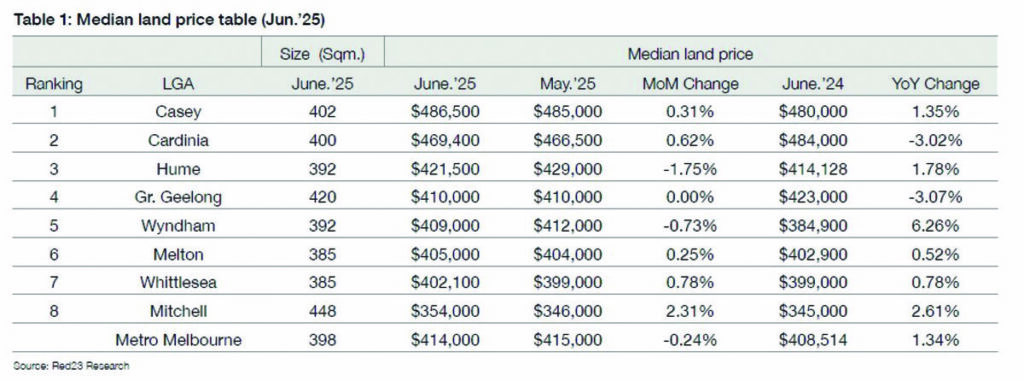 The median land price in Greater Geelong held steady at $410,000 in June. This puts the region among the more stable price points in the state, despite national market fluctuations. While median prices remained flat month-on-month, they were down 3.07 percent compared to June 2024.