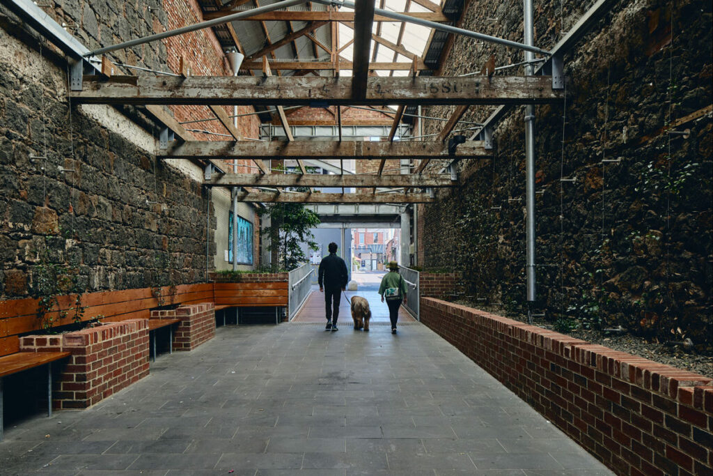 “Through adaptive reuse and alteration of a two-storey building, NMBW has created a generous, poetic pedestrian link and public space that stitches together the laneways of Geelong’s CBD.