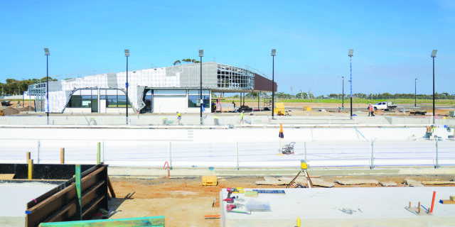 Victorian Liberal Senator Sarah Henderson toured the $15.5 million facility under construction in the Drysdale Sporting Precinct, and walked the length of the 50m outdoor pool being built as part of stage 1.