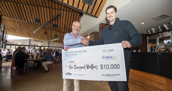 Boyd is now an ambassador for Lifeline, and Movember Gentlemen of Geelong organiser David Sharp presented Boyd with a $10,000 donation to Lifeline.