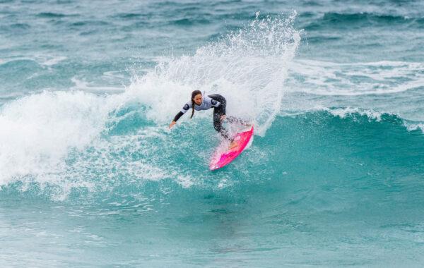 Bassed looked like the one to beat from the outset in the Open Women’s field, showing off strong power and precision that stood tall on the steep walls of Rye Surf Beach.