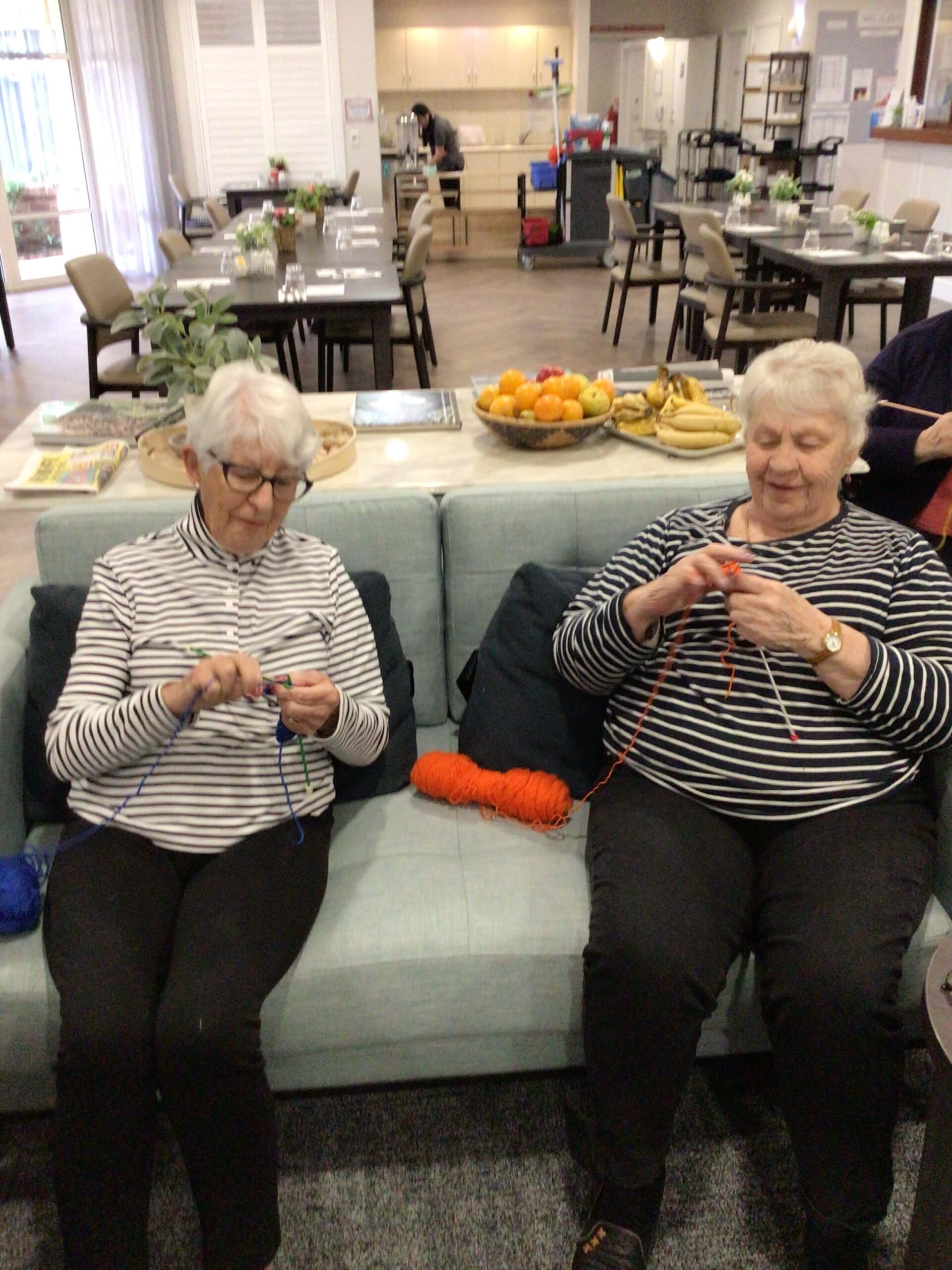 Volunteers play a vital role in the residents’ community life. At Eden Park, they support activities such as footy tipping, craft, and knitting groups.
