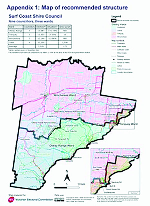The attached map shows the boundaries of the three wards within Surf Coast Shire.