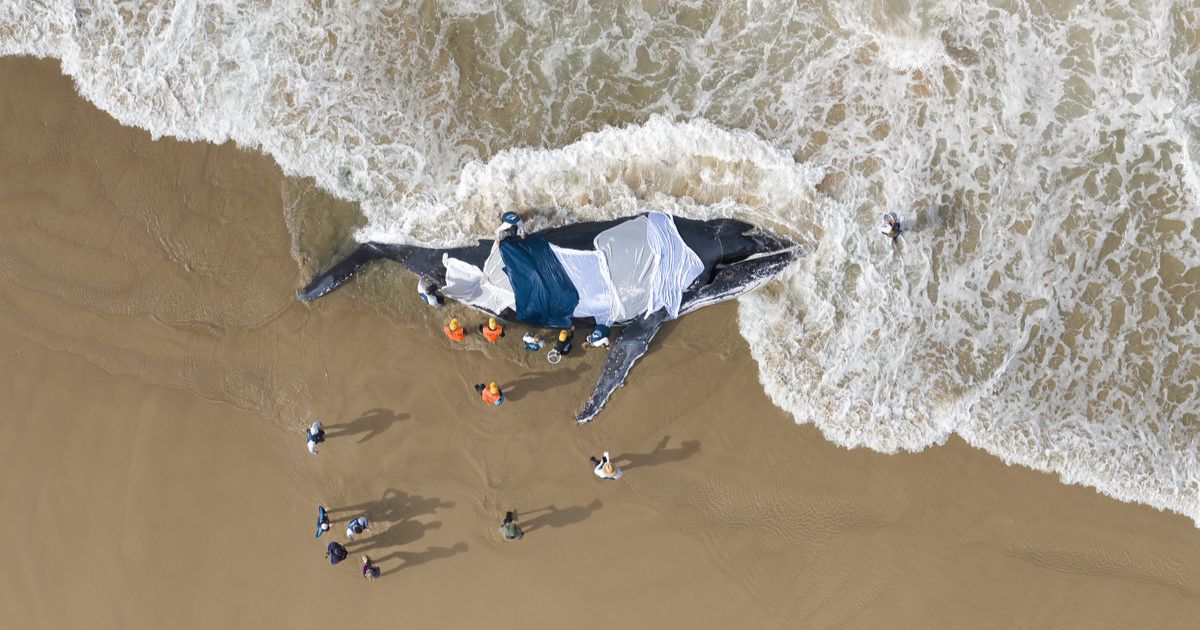 The photo Craig Parry took of a stranded humpback whale at Seven Mile Beach in 2023 has won an international award. Photo: SUPPLIED